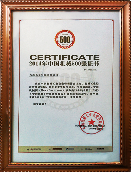 9月2日,由中國企業(yè)聯(lián)合會(huì)、中國企業(yè)家協(xié)會(huì)舉辦的“2014中國500強(qiáng)企業(yè)高峰論壇”在重慶舉行。當(dāng)天,2014年中國500強(qiáng)企業(yè)和中國500強(qiáng)制造企業(yè)正式揭曉。大連叉車有限責(zé)任公司繼續(xù)榜上有名,蟬聯(lián)中國機(jī)械500強(qiáng)。